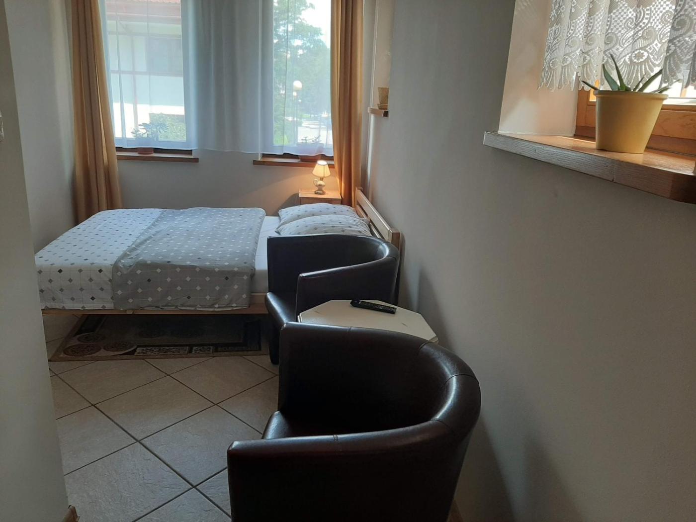 Pokój dwuosobowy. Jest to pokój dwuosobowy z jadalnią, szafą oraz łazienką z prysznicem. Goście mogą przygotowywać posiłki w aneksie kuchennym z płytą kuchenną, lodówką, przyborami kuchennymi oraz zestawem do parzenia kawy i herbaty. Pokój wyposażony jest w ogrzewanie i telewizor z płaskim ekranem. Z okien roztacza się widok na miasto. Podłoga wyłożona została kafelkami. W tej opcji zakwaterowania znajduje się 1 łóżko. Pokój Dwuosobowy - 2 osobowy. Powierzchnia pokoju ok.: 15 mkw. ;