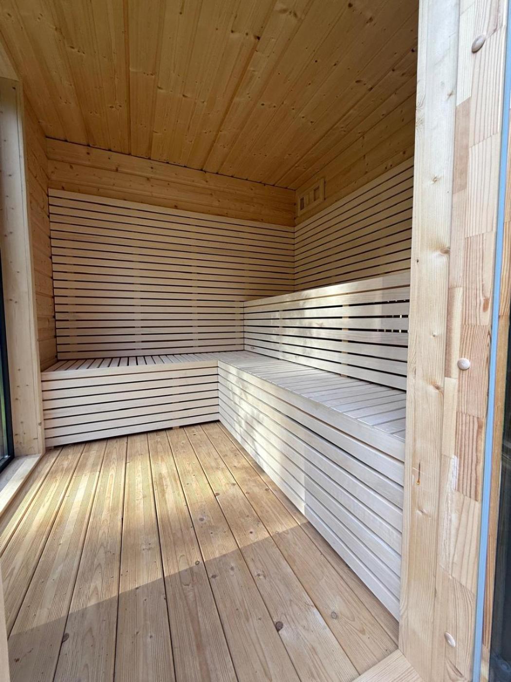 Zaplecze odnowy biologicznej obiektu Chill ChaTka Osowiec obejmuje saunę i wannę z hydromasażem.