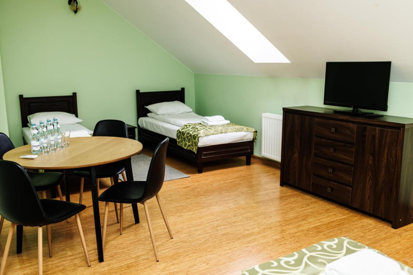 Pokój Czteroosobowy typu Economy. The quadruple room provides air conditioning, a tea and coffee maker, as well as a private bathroom featuring a shower and a hairdryer. The quadruple room offers a flat-screen TV, a wardrobe, a sofa, parquet floors as well as garden views. The unit offers 4 beds. Pokój Czteroosobowy - 4 osobowy. Powierzchnia pokoju ok.: 27 mkw.