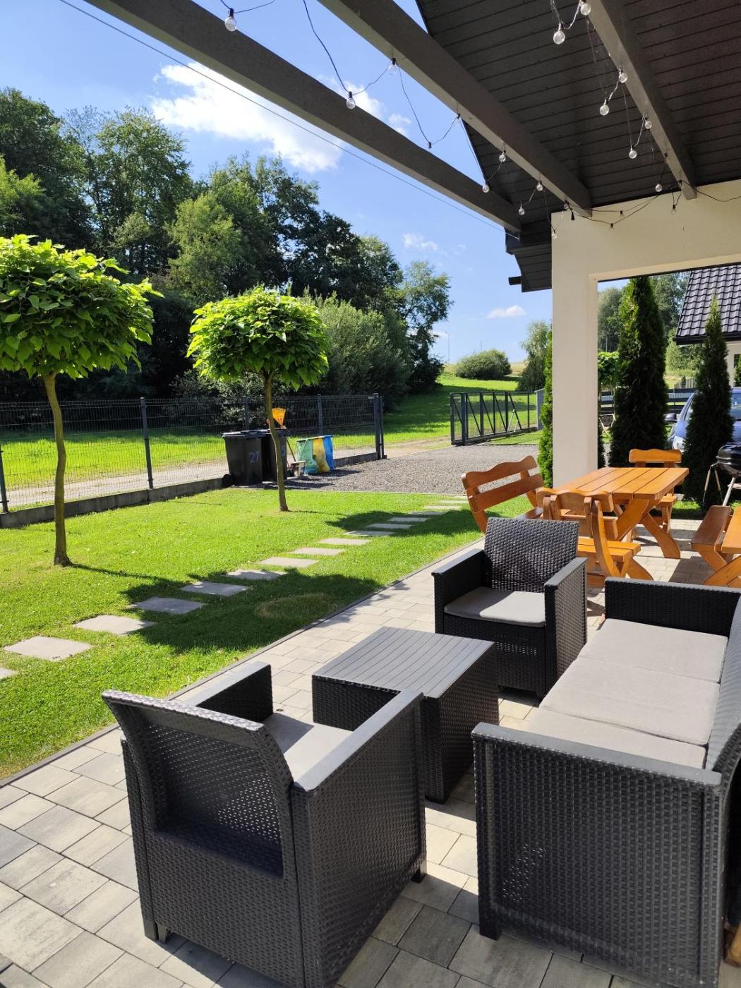 Dom z 1 sypialnią. Featuring a private entrance, this air-conditioned holiday home is comprised of 1 living room, 1 separate bedroom and 1 bathroom with a shower and a hairdryer. Guests will find a stovetop, a refrigerator, kitchenware and a microwave in the well-fitted kitchenette. The holiday home also has a barbecue. Boasting a terrace with garden views, this holiday home also offers a seating area and a flat-screen TV. The unit offers 3 beds. Dom wakacyjny - 5 osobowy. Powierzchnia pokoju ok.: 28 mkw.